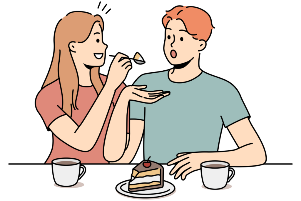 Une semaine plus tard, le mari a remarqué que sa femme se faufilait dans la cuisine tard dans la nuit. Il l’a surprise en flagrant délit, en train de dévorer une grosse tranche de gâteau au chocolat.